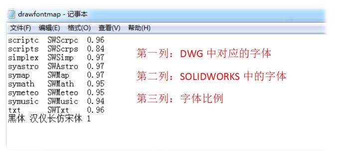 该项目可以分为两个部分:使用windows字体、使用SHX字体。但无论是使用那种类型的字体都要先进行字体映射的指定,即告诉SOLIDWORKS导出时使用哪种字体。